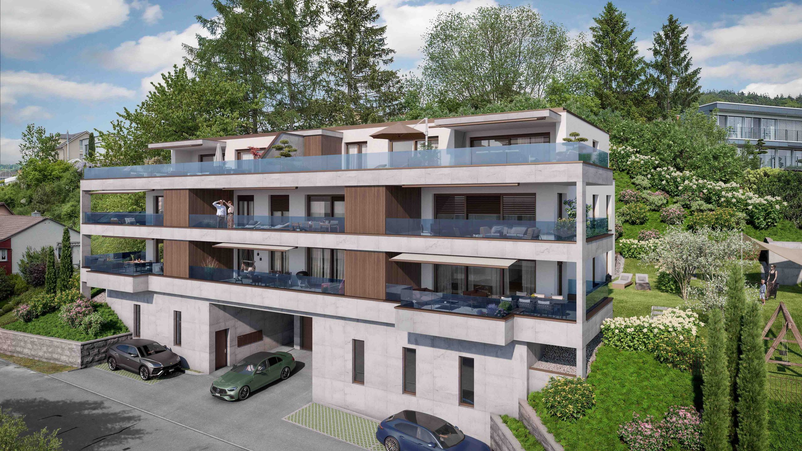 Erleben Sie ein behagliches Zuhause mit grosszügigen Grundrissen, hochwertiger Ausstattung und edlem Innenausbau aus Holz, Stein und Glas. Modernste Technik, smarte Steuerung und schwellenlose Übergänge sorgen für höchsten Komfort, während durchdachte Raumkonzepte und viel Licht ein offenes, elegantes Wohngefühl schaffen – Ihr neues Zuhause vereint Luxus, Stil und Nachhaltigkeit.